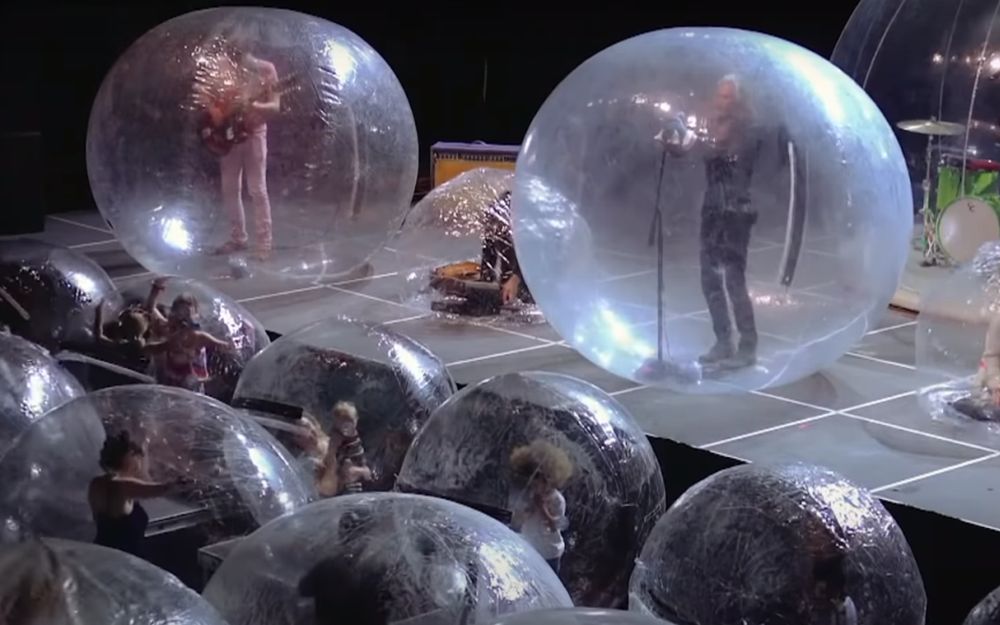 Koncerty w dobie pandemii? Gdy już traciliśmy nadzieję, że cokolwiek da się zrobić, zespół The Flaming Lips udowadnia, że nie ma rzeczy niemożliwych. Grupa zagrała koncert dla stu osób w specjalnych dmuchanych bańkach.
