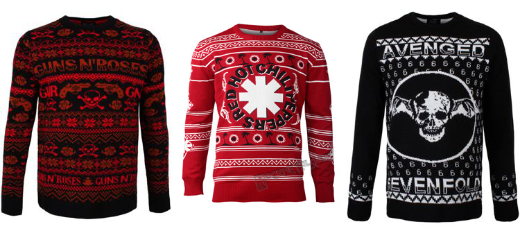 Akrylowy obciach z cekinową choinką lub brokatowym Mikołajem? Cóż, opinie o tzw. „brzydkich świątecznych swetrach” są podzielone. My nie mamy wątpliwości: każdy może je nosić, nawet fan ostrzejszych brzmień – oczywiście pod warunkiem, że zamiast choinki lub rzeczonego Mikołaja na „brzydkim swetrze” znajdą się wzory np. Guns N’ Roses albo Avenged Sevenfold. Wtedy o obciachu nie będzie mowy. Wybór jest ogromny, ale lepiej dobrze się zastanówcie: podstawa to odpowiednio dobrać zespół. Nie macie pewności? Wzór z Red Hot Chili Peppers powinien sprawdzić się w każdym przypadku. W końcu Peppersi są jak Coca-Cola – każdy ich lubi.