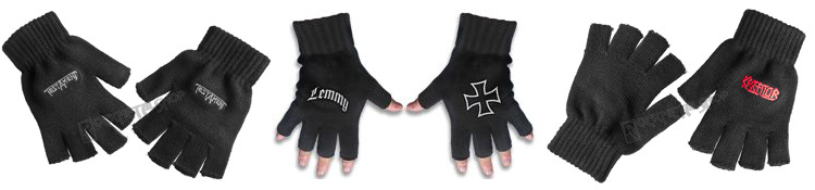 Opcja podobna do czapki. Rękawiczki z obciętymi palcami, w uniwersalnych rozmiarach, wygodnie dopasowujące się do dłoni, a przede wszystkim z wyhaftowanymi grafikami zespołów – to może być strzał w 10. Jak znalazł na drobny, świąteczny upominek, zwłaszcza dla osób, które przez cały rok chodzą w ramoneskach. Wyobraźcie sobie połączenie ramoneski z rękawiczkami „Lemmy: Logo & Iron Cross” – robi wrażenie!