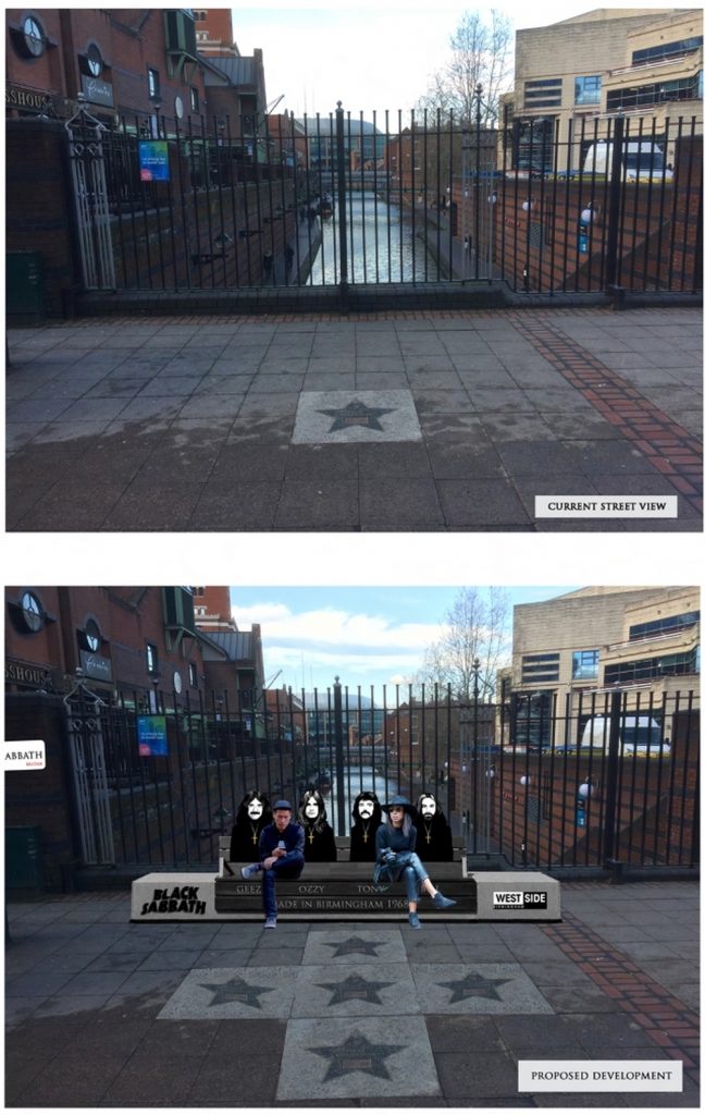 Na moście Black Sabbath znajdzie się również ławka poświęcona historii grupy, przyozdobiona wizerunkami angielskich muzyków. Ci, którzy zmęczą się spacerem po rodzinnym mieście Black Sabbath, będą mogli na niej chwilę odpocząć i powspominać autorów „Paranoid”.